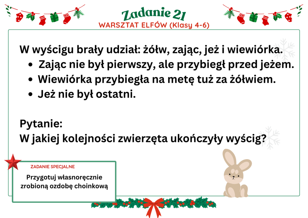 Zadanie 21 – ZAGADKOWY WARSZTAT ELFÓW (Klasy 4-6)